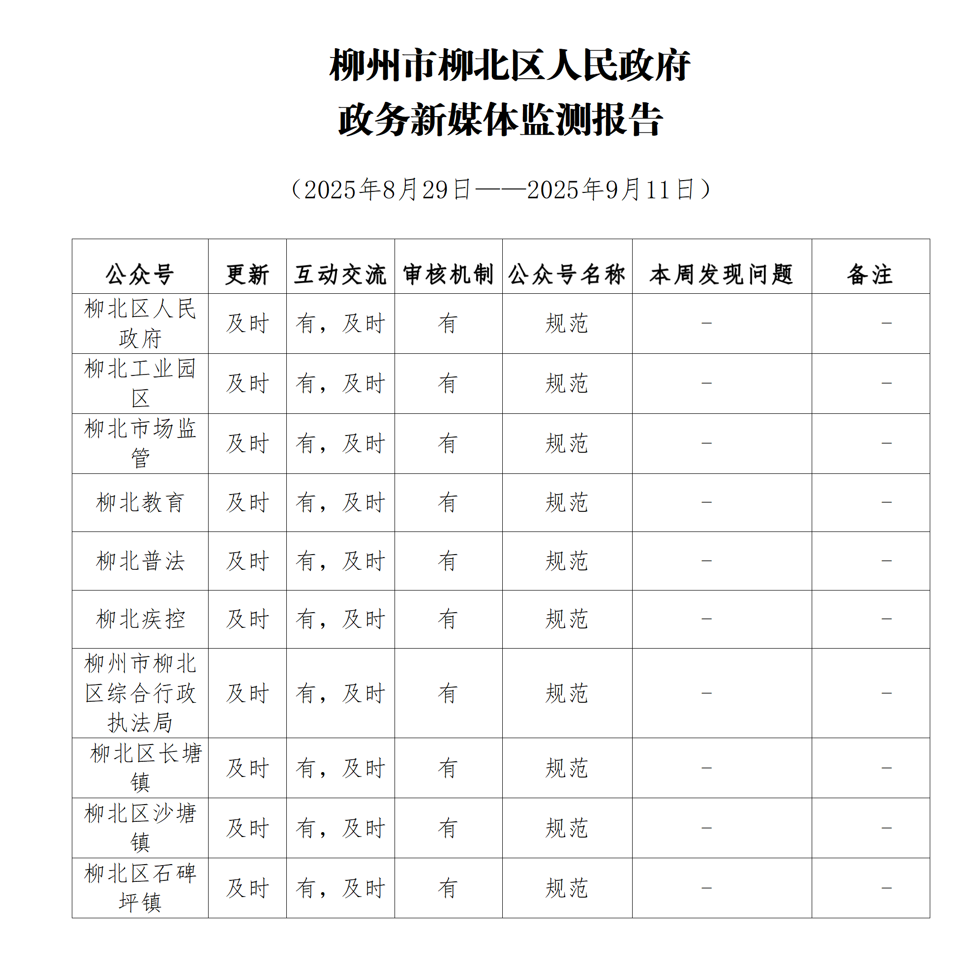 柳州市柳北区2025年9月份政务新媒体周监测情况