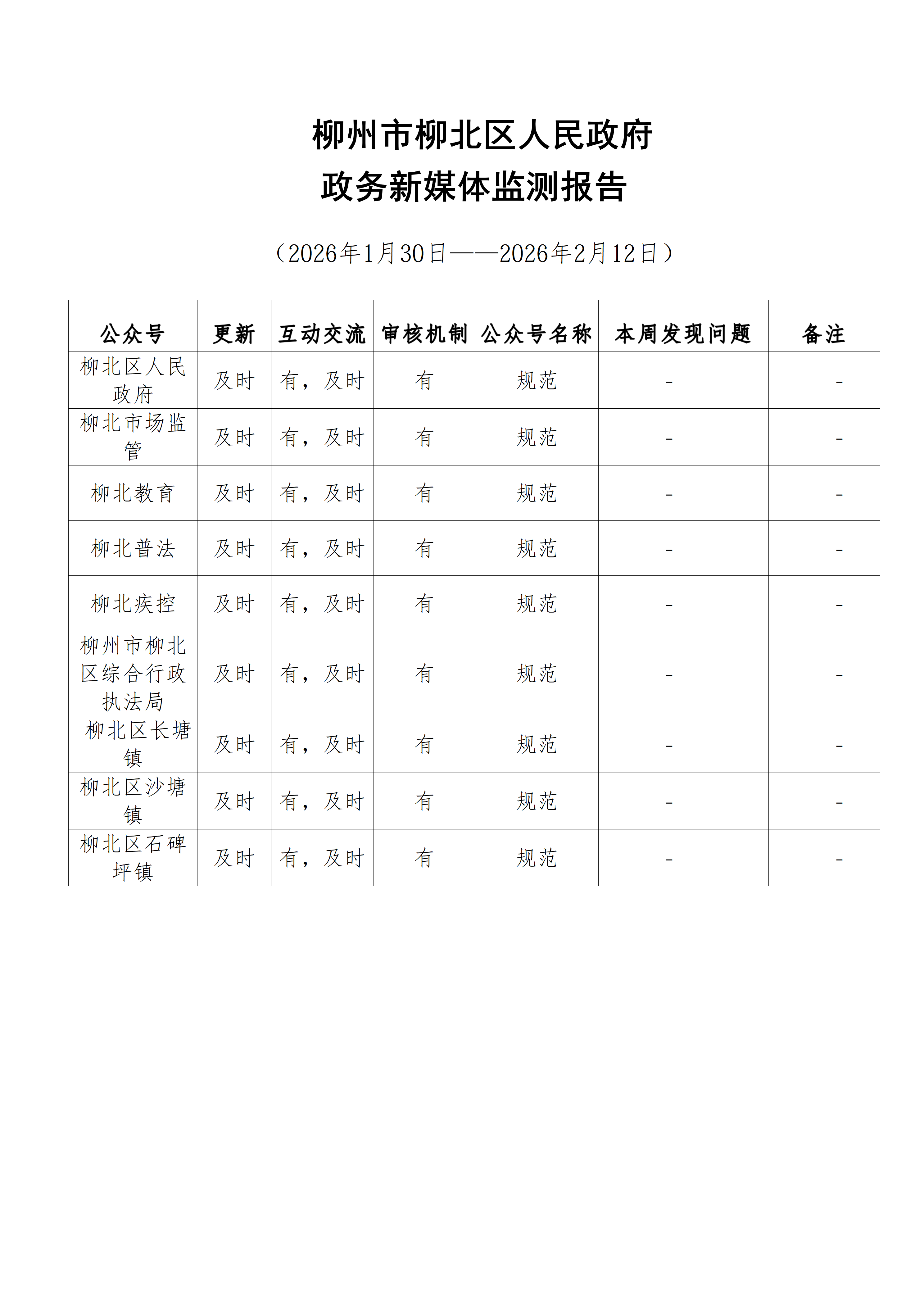 柳州市柳北区2026年2月份政务新媒体周监测情况