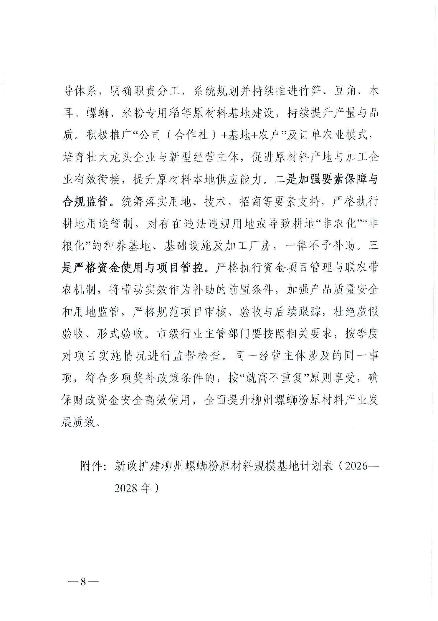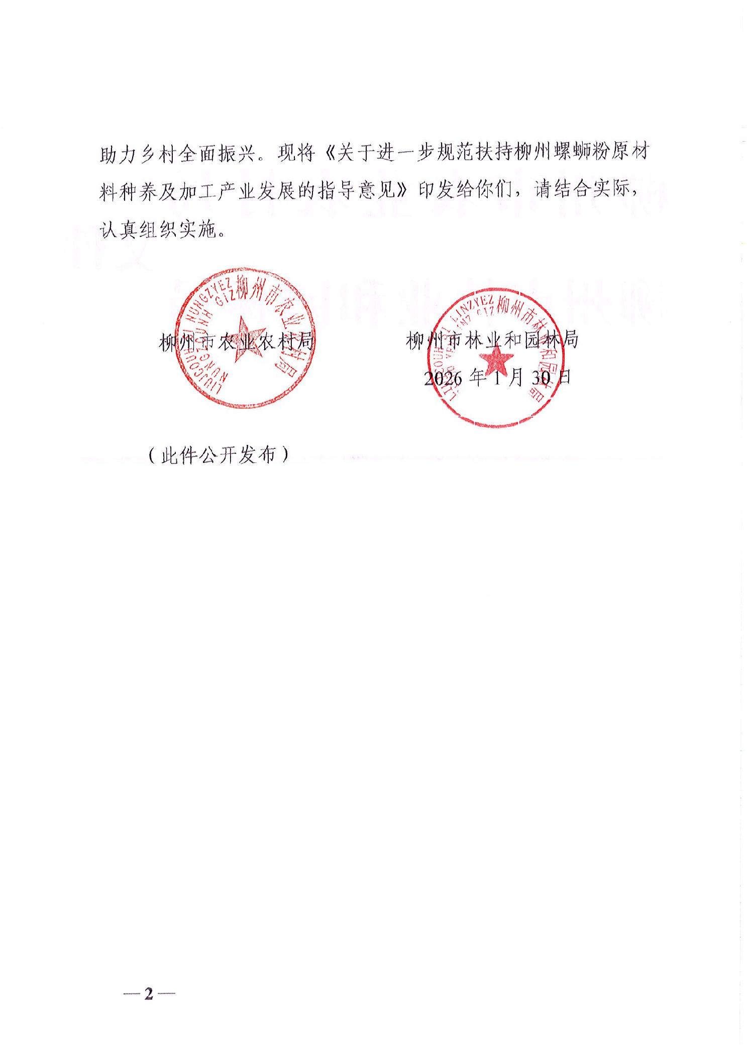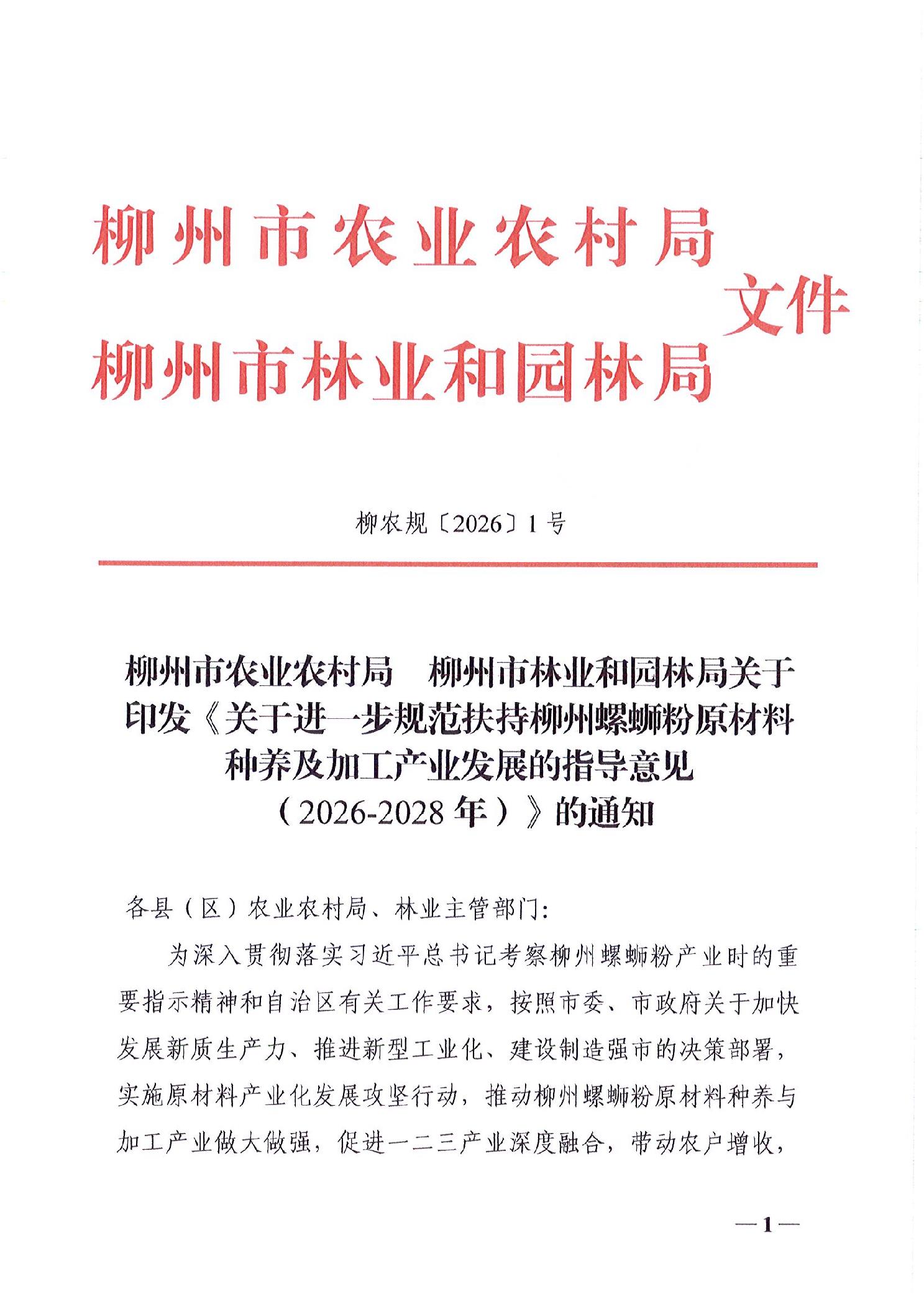 柳州市农业农村局 柳州市林业和园林局 关于印发《关于进一步规范扶持柳州螺蛳粉原材料种养及加工产业发展的指导意见(2026-2028年)》的通知