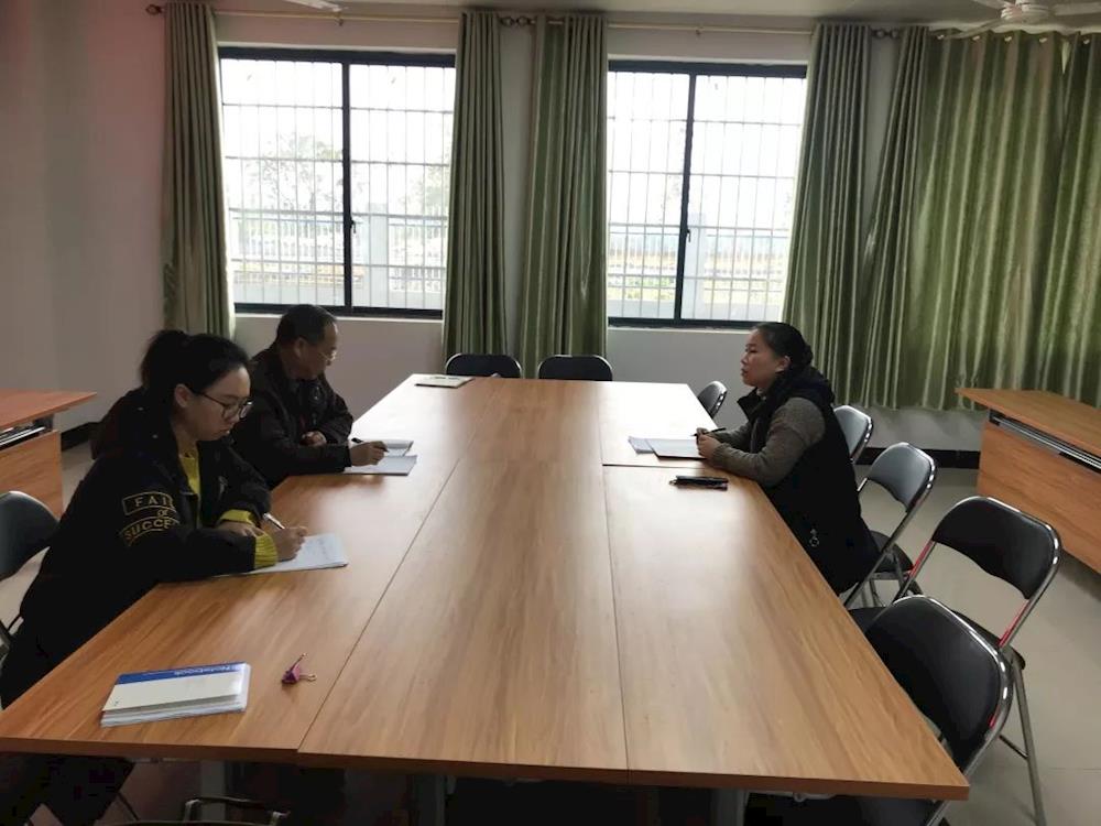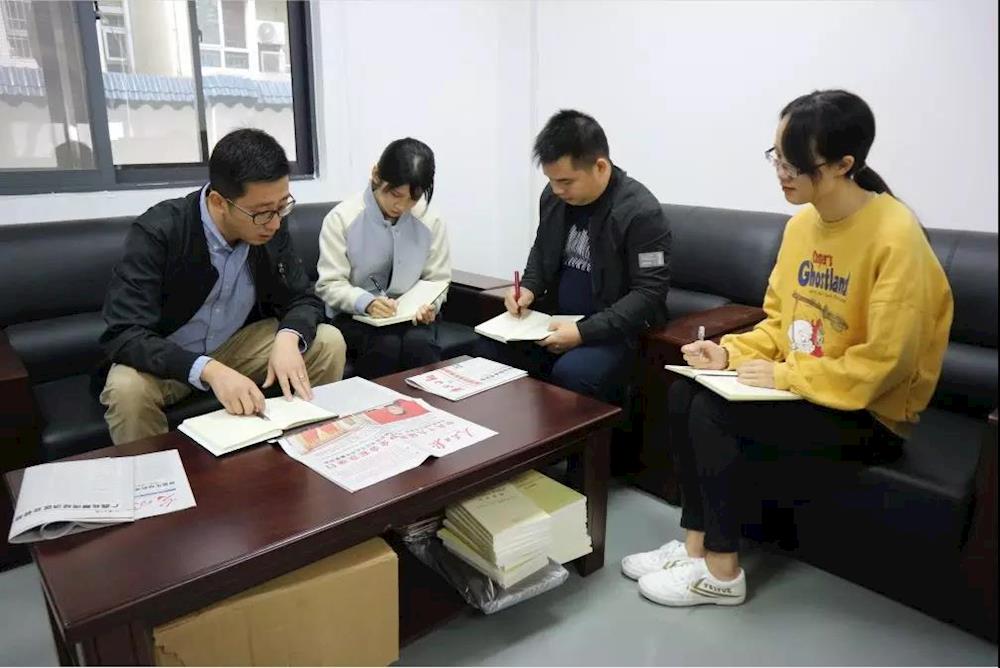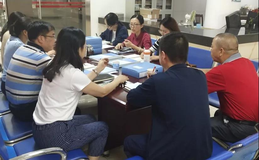 办公室全体人员在召开每周工作例会