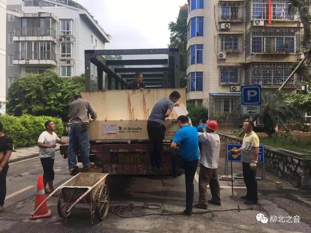 在我市出台《柳州市关于推进既有住宅加装电梯工作的实施意见》后,昨天上午,我市首个实施老旧小区加装电梯的三中路66号市委大院12栋,加装的首台电梯已于昨天进行吊装,预计国庆节期间即可投入使用。