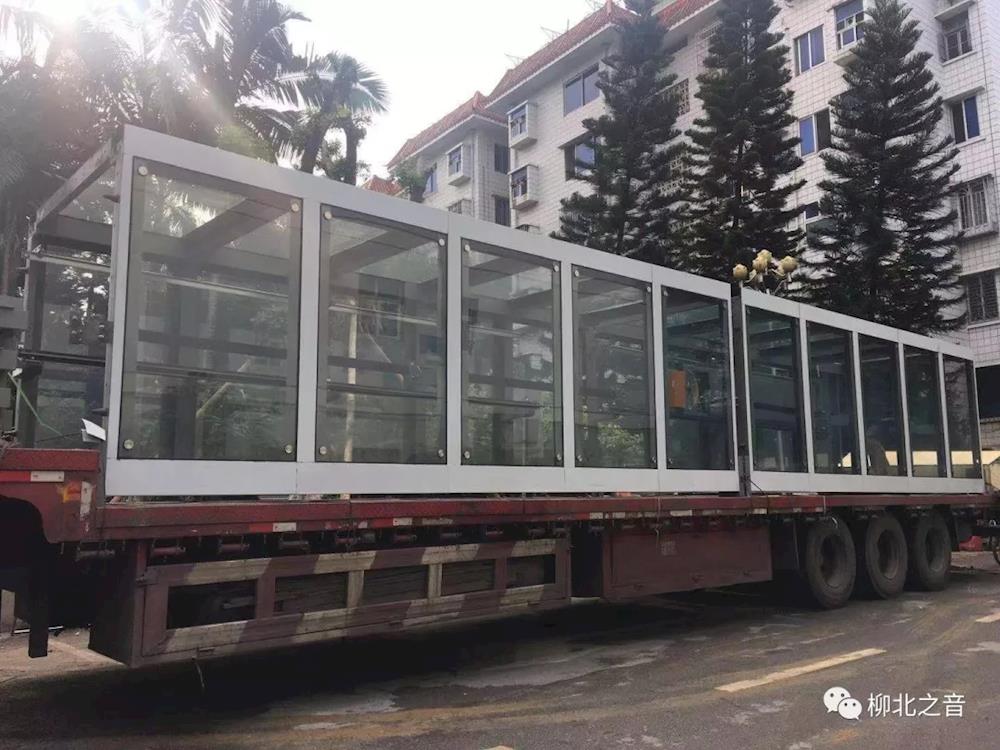 在该小区看到,两辆大卡车已将四周为透明玻璃的电梯井道运到了12栋楼下。据介绍,共有五节井道,每节4-6米,全长29米,都是从厂家生产好,直接运到现场用吊车吊起就可以像搭积木一样进行拼装了。