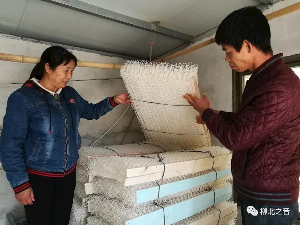 11月27日下午,柳北区石碑坪镇新维村村委副主任、共产党员、产业扶贫带头人蔡燕花来到贫困户黄桂龙家检查蚕房,告诉黄桂龙注意收藏好养蚕用具,利于明年使用。