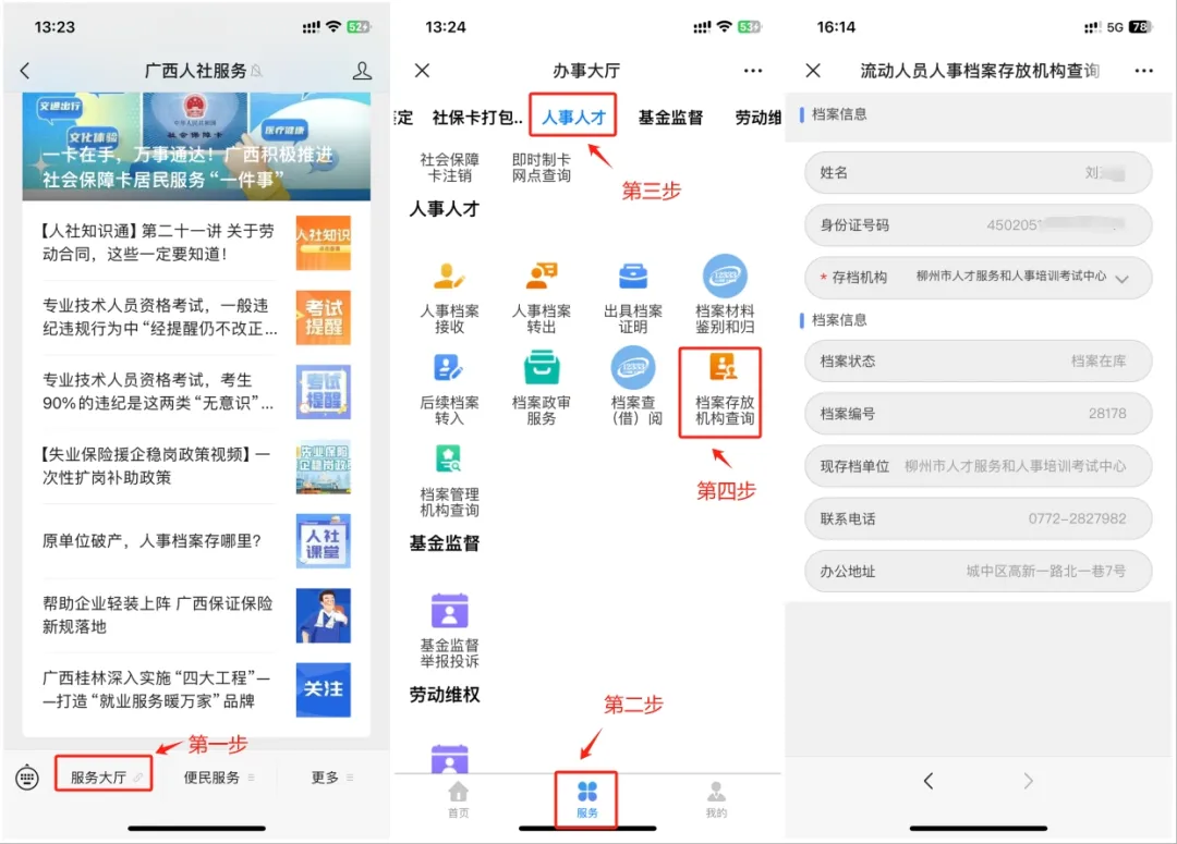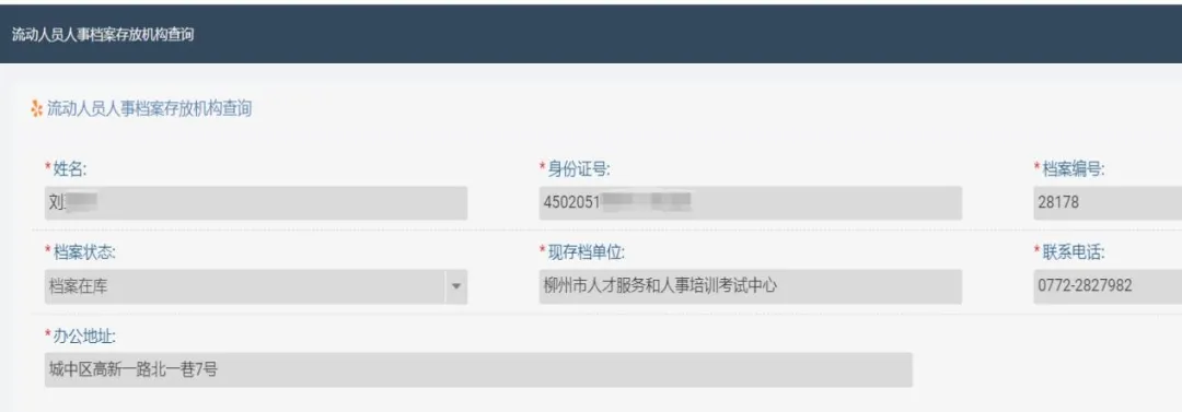 注:每年7-9月为柳州市人才服务和人事培训考试中心收录档案高峰期,建议10月起查询;如在平台查询不到档案存放信息,又急需使用档案,可先向您的毕业院校查询档案是否已经转出,凭学校提供的EMS快递单号登录EMS网站查询物流情况,确认档案签收后可致电或现场查询确认。