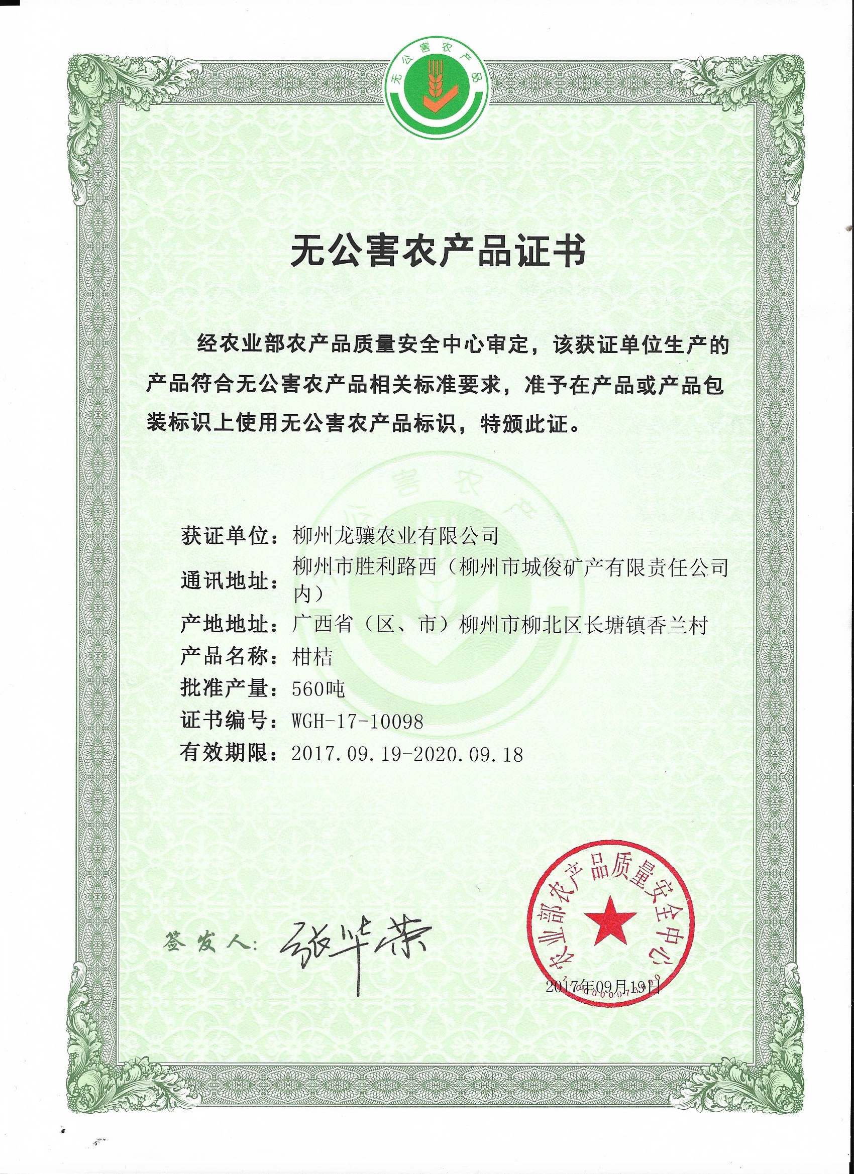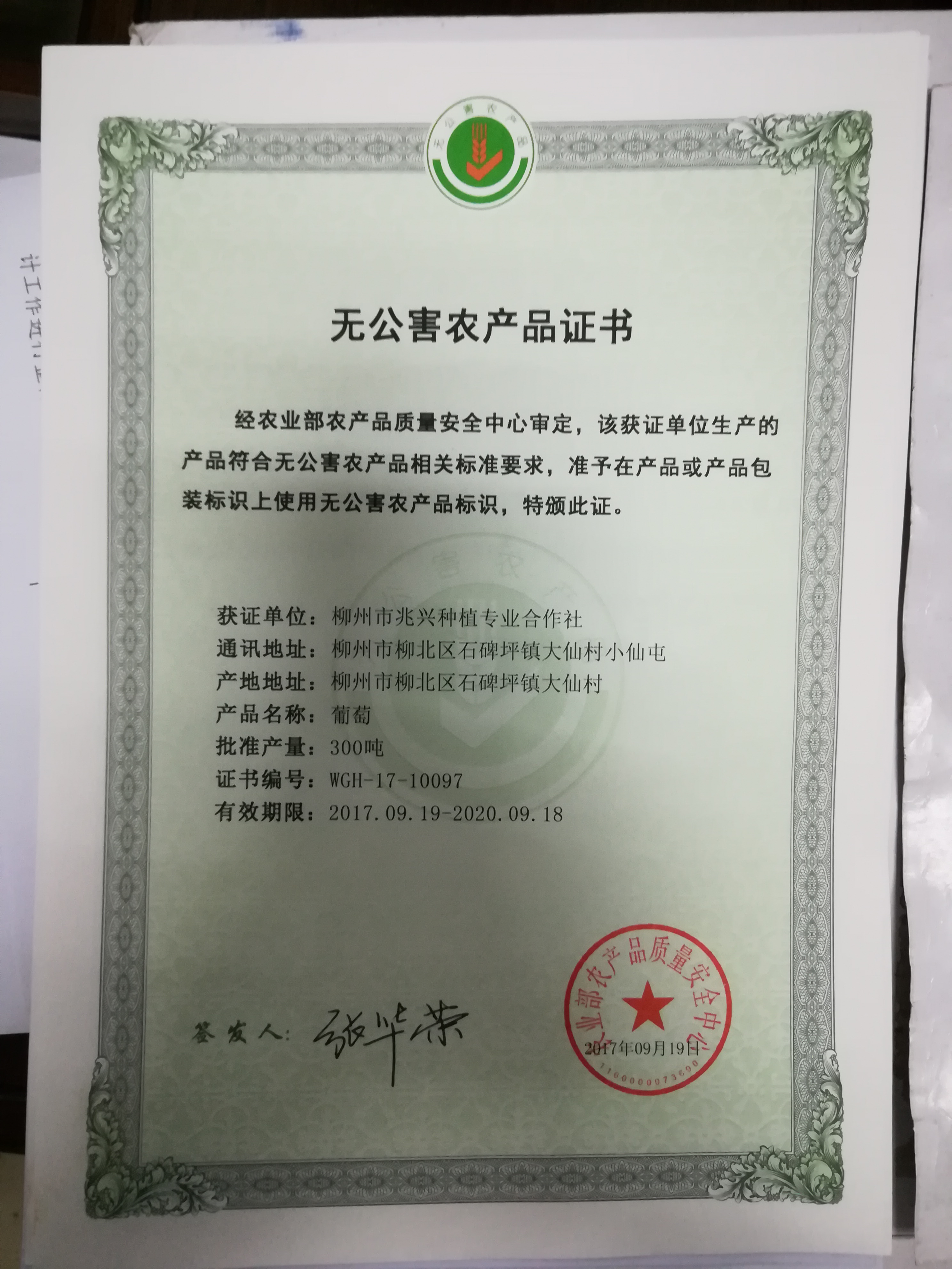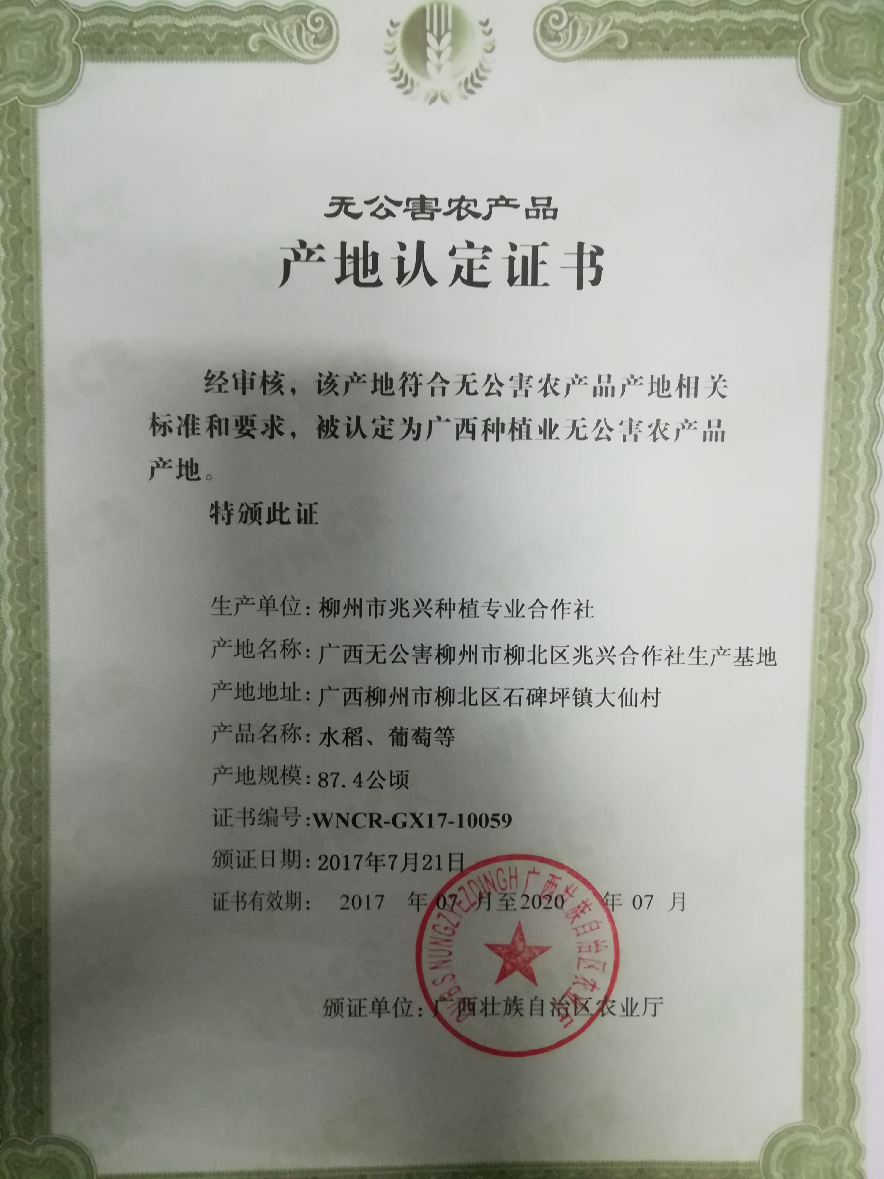 柳北区无公害认证