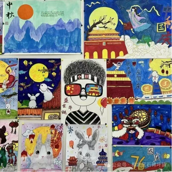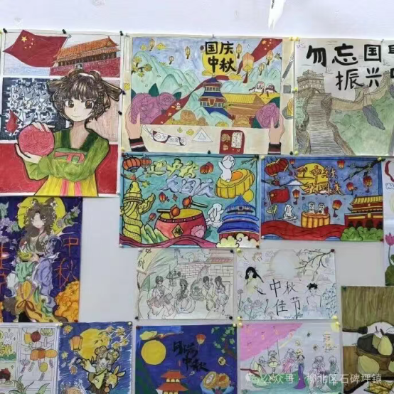 经过征集与筛选,近 100 幅优秀书画作品脱颖而出。幼儿组的作品充满童真,用稚嫩的笔触勾勒出月亮、玉兔等中秋元素;小学组的画作色彩明快,天安门城楼与五星红旗交相辉映,满是对祖国与团圆的美好想象;中学组的书法作品笔锋刚劲,绘画作品兼具创意与内涵;成人组的佳作则尽显功底,挥毫书写 “国泰民安”“花好月圆” 的美好寄语。