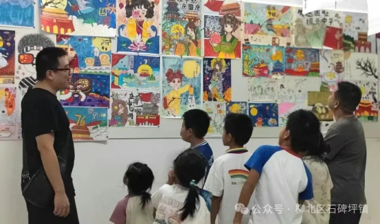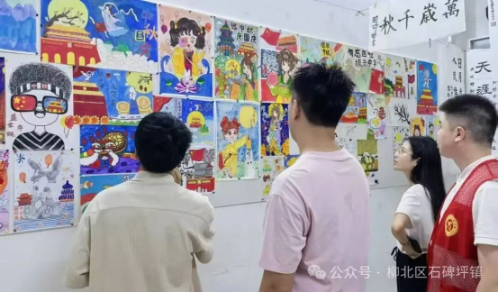 展览期间,陆续有群众前来观赏。家长牵着孩子缓步看展,不时讲解:“这幅嫦娥奔月是中秋故事,那幅天安门是祖国象征。” 有家长笑着说:“带娃来看能接触传统文化,比在家看电视有意义。” 年轻人围在绘画作品前,轻声讨论色彩搭配与创意;孩子们找到自己或同学的画,兴奋分享,满是骄傲,为展厅添了活力。。