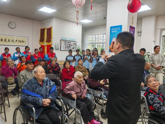 凤凰社区联合凤凰社区卫生服务站、凤凰中学、长塘中学及柳州市健康养生协会共同前往凤凰社区居家养老服务中心,开展“重阳敬老暖人心 健康相伴乐邻里”敬老爱老活动。柳州市健康养生协会韦俊宇老师讲解中医穴位急救知识,卫生服务站梁艳清医生在台下协助老人定位穴位、掌握操作手法。学生为老人带来朗诵、独唱、舞蹈等节目,还表演了广西特色非物质文化遗产彩调《十月花》。长廊内摆放养生茶歇与水果,伴着暖阳,志愿者倾听老人诉求,收集其对适老化社区建设的意见建议。长者饭堂内,学生手把手协助老人制作手工桌面摆件,为老人生活增添艺术气息。随后,学生从厨房端出煮好的米粉至长廊,供老人享用午餐。