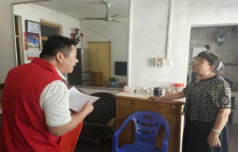 祥和社区志愿者走访慰问辖区高龄、独居、行动不便的困难老人家庭,为老人们送上重阳节纪念品券及节日祝福,并详细询问他们的身体状况和生活需求,叮嘱老人注意添衣保暖,鼓励他们保持乐观心态。老人们接过纪念品券,脸上露出幸福笑容,纷纷感谢社区的关怀。