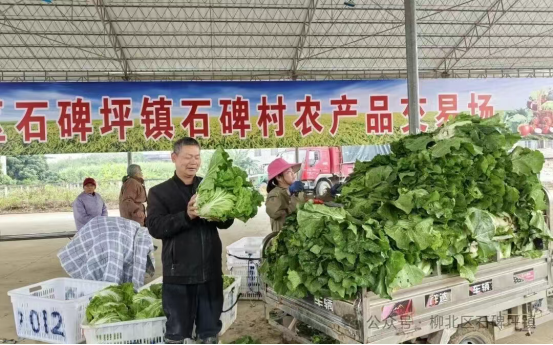 “看到每天都有收购商上门,乡亲们蔬菜销路通、收益稳,我打心底高兴!”石碑村党总支书记周宇望着繁忙的交易场欣慰地说。交易场内农户整齐摆放鲜菜,收购商穿梭挑选、称重装车,一派繁忙。这得益于村里“党支部+合作社+农户”模式,不仅对接柳北区乡村振兴馆实现产销直达,周边老209国道修复后更缩短运输时间20分钟,降低成本,助力蔬菜快速运往海吉星等市场及周边省市,既解决农户销路,也保障市民“菜篮子”供应。
