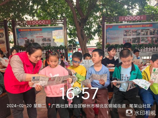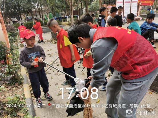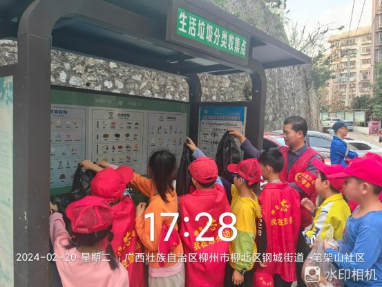 活动有社区垃圾分类督导员分三个步骤依次进行。首先,以我们的节日为契机,引导青少年认同传统、尊重传统、弘扬传统,同时指出节日期间,家庭人员聚集容易产生大量垃圾,大家应该对这些垃圾进行准确的分类和正确的投放。其次,社区志愿者发放《柳州市生活垃圾分类投放指南》的宣传折页,以分享、抢答等互动形式,引导大家正确分类投放日常生活垃圾,倡导大家在享受节假带来欢乐的同时,保护好我们的家园环境。最后,在社区垃圾分类督导员的号召下,青少年们纷纷穿上红马甲变身“环保小卫士”。将生活区内捡来的垃圾进行环保分类,正确投放到相应的垃圾桶中。在理论与实践的相互加持下,青少年们在传统文化和环保理念相融合的滋养中健康成长。