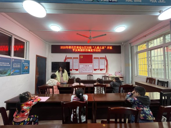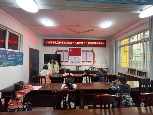 为扎实推进“把爱带回家 暖心护航伴成长”2026年寒假儿童关爱服务行动,切实提升辖区少年儿童安全防范意识与自我保护能力,守护孩子们平安度过假期,2026年2月27日上午9点,柳北区雀儿山街道南雀社区妇联依托“儿童之家”阵地,组织辖区儿童在南雀社区二楼会议室开展“平安寒假·防拐防骗”主题宣传教育活动。