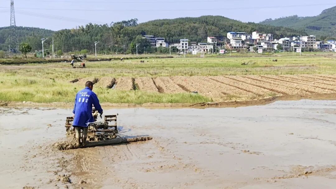 上垌村水田上,农户驾驶耕整机穿梭作业;村委工作人员铺设输水管道,将河水引入灌溉渠;志愿者沿着沟渠清理淤泥杂草、捡拾塑料膜等废弃物。一边是抢抓农时的生产热情,一边是守护生态的坚守担当,两者交织成田野上最生动的画面。
