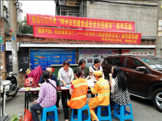 5月2日上午,雅莲社区联合雅儒街道办事处在广雅路南一巷开展2018年第16个《职业病防治法》宣传周活动,活动主题是“健康中国,职业健康先行”。活动中,社区人员向辖区居民面对面的普及职业病的危害和食品安全知识,倡导和动员广大居民群众共同关注劳动者职业健康,广泛宣传职业病防治知识和健康生活方式理念。活动现场,社区还向居民免费提供测量身高体重和电子测量血压,并发放宣传资料64份,活动得到了居民的好评。