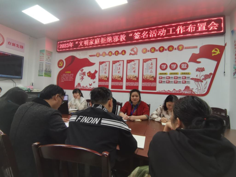 在“反邪”工作布置会上,欣发社区书记结合社区近期工作实际,将“反邪教+志愿服务”“反邪教+创城”“党建引领+反邪教”等多种模式结合反邪教工作有效开展,结合近期“邪教”案例,通过言简意赅的方式向居民普及如何反对和抵制邪教,使居民认识到邪教的危害性、非法性和反动性。现场,社区工作人员动员所有居民对邪教说不,在网上进行“广西文明家庭拒绝邪教”签名活动,引导居民主动参与到反邪教斗争中去,参加活动的居民表示,要远离邪教,并发动身边更多的人加入网络签名活动,为反邪、拒邪传递自己的正能量。