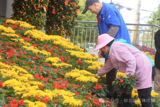 走在社区里,一串串崭新的红灯笼已挂满沿路的树梢,在枝头错落点缀,随风轻摇,为整条道路披上了流光明媚的节日盛装。文化宫门口,工作人员更用一盆盆鲜艳的花卉,精心摆放出“马到成功”的醒目字样,引得居民纷纷驻足。灯笼的红,缀满枝头;鲜花的艳,绽放在地——它们交织在一起,构成了社区里最温暖、最悦目的新年底色。