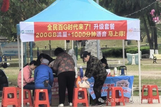 中国移动的摊位同样人气十足。工作人员面对面解答手机使用疑问,帮助居民优化套餐、处理话费流量问题,将通信服务送到家门口,解决了不少老人的日常小烦恼。