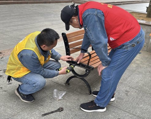 “想在广场歇歇脚,可看着松动的座椅总担心不安全。”居民黄阿姨感慨道。3月17日,跃进街道和兴园社区工作人员在日常巡查中得知这一情况后,立即对小区内的休闲座椅进行了全面排查。经检查发现,部分座椅因长期风吹日晒、频繁使用,已出现支架松动、螺丝脱落等问题,不仅给居民日常休憩带来不便,更存在一定的安全隐患。