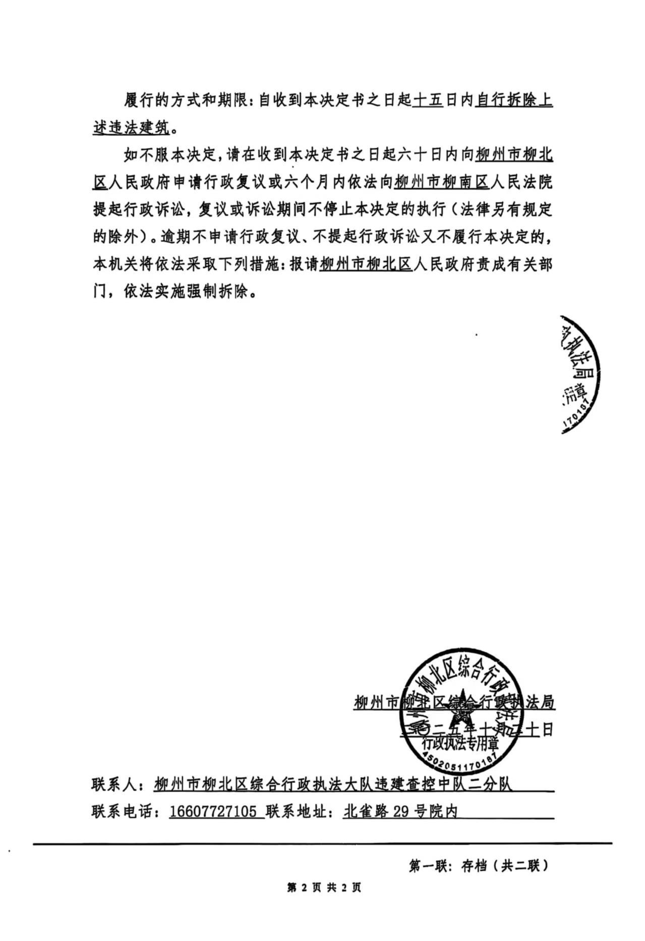 联系人:柳州市柳北区综合行政执法大队违建查控中队