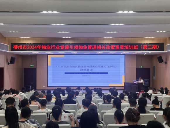 2024年7月30日召集柳北区物业服务企业代表及各镇、街道及社区相关工作人员参加柳州市物业行业党委党建引领物业政策宣贯会,通过培训宣传贯彻《广西壮族自治区物业管理条例》,全面解读业委会换届流程与三方联动机制,有效提高管理人员对物业管理相关法律、法规的认识,提升各镇街道及社区工作人员业务能力,引导小区业主成立业主委员会,更高效、精准的指导物业管理。