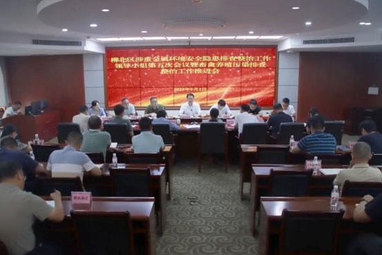 9月1日,区委书记、区涉重金属环境安全隐患排查整治工作领导小组组长石中华主持召开涉重金属环境安全隐患排查整治工作领导小组第五次会议,深入学习贯彻习近平生态文明思想和习近平总书记关于广西工作论述的重要要求,贯彻落实党中央、自治区党委和市委的部署要求,牢固树立和践行“绿水青山就是金山银山”理念,统筹建好政治生态、自然生态“两个生态”,以更高标准、更严要求推进涉重金属环境安全隐患排查整治工作。区长、领导小组组长洪进兴传达自治区、柳州市相关会议精神并讲话。