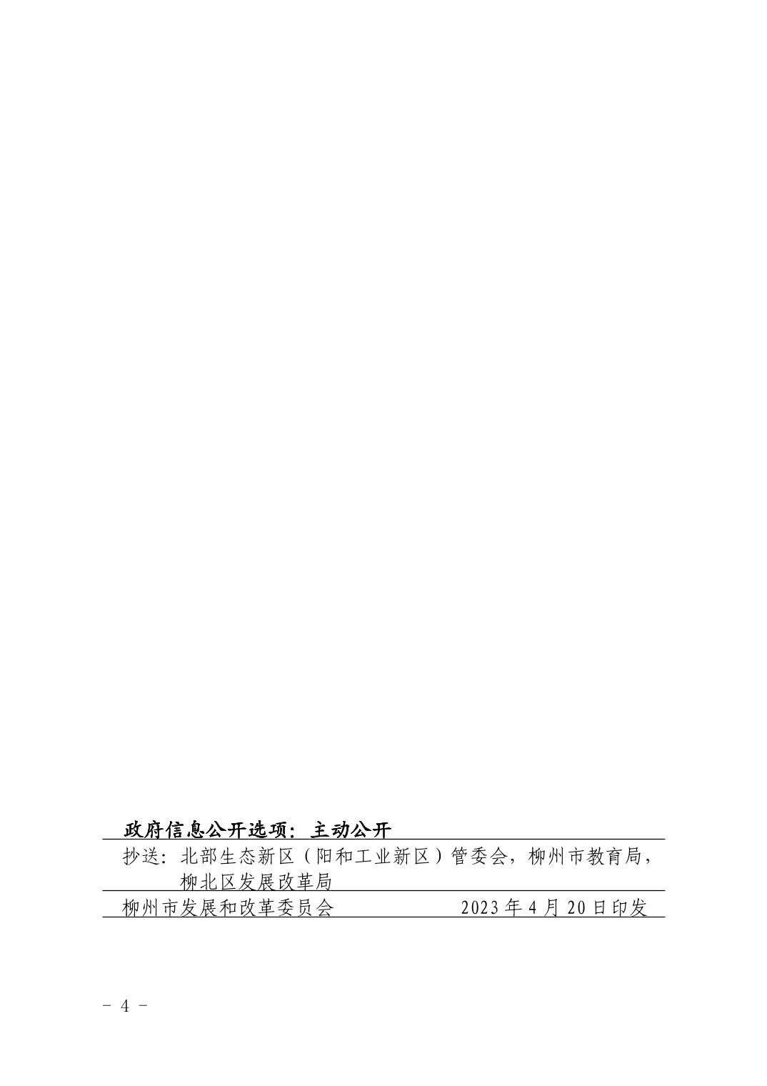 柳发改规划〔2023〕47号柳州市发展和改革委员会关于调整柳州市北部生态新区实验中学初步设计的批复