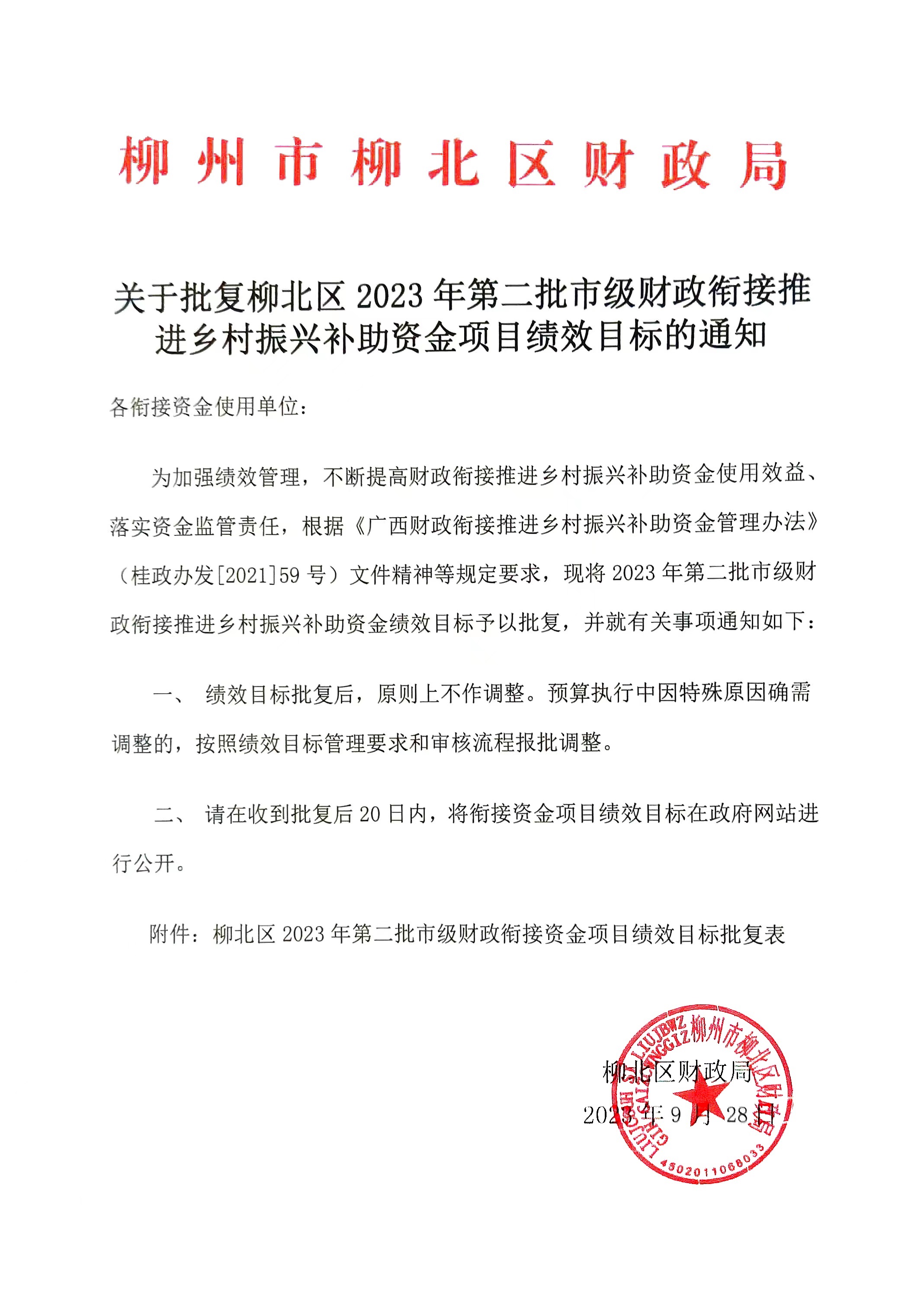 2、柳北区石碑坪镇2023年第二批市级财政衔接推进乡村振兴补助资金项目绩效目标批复表